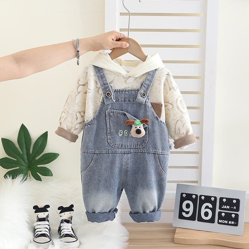Denim Overalls Set 2-Piece Kids Outfit with Shirt & Jeans Stylish