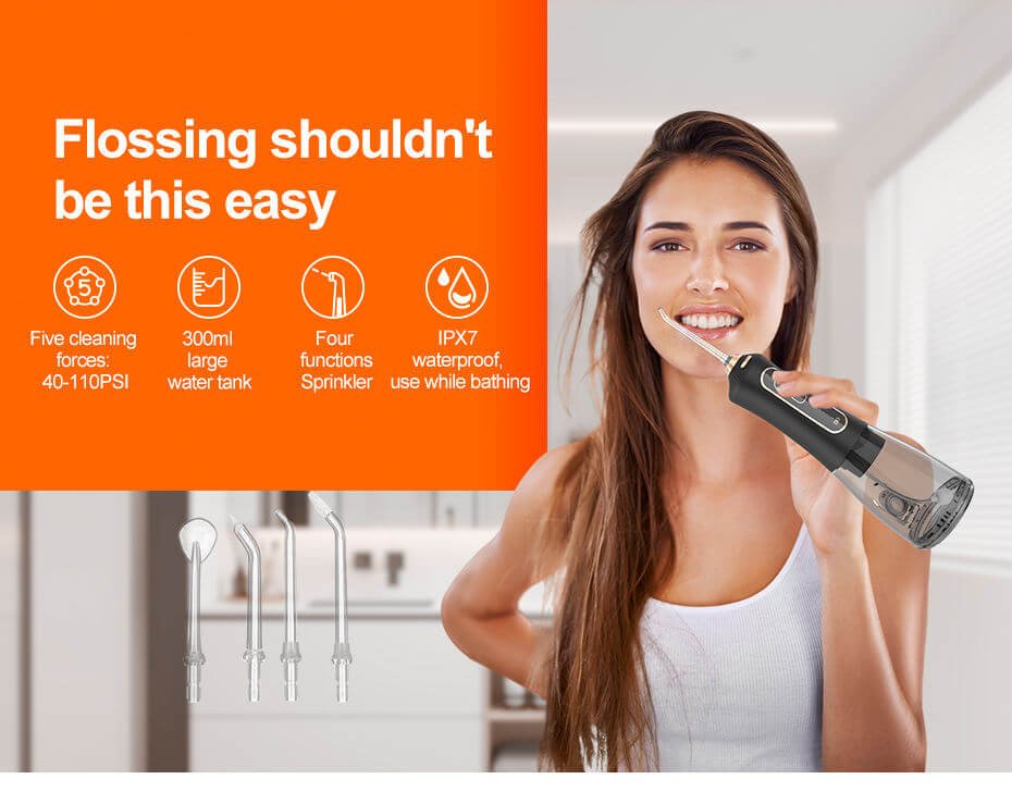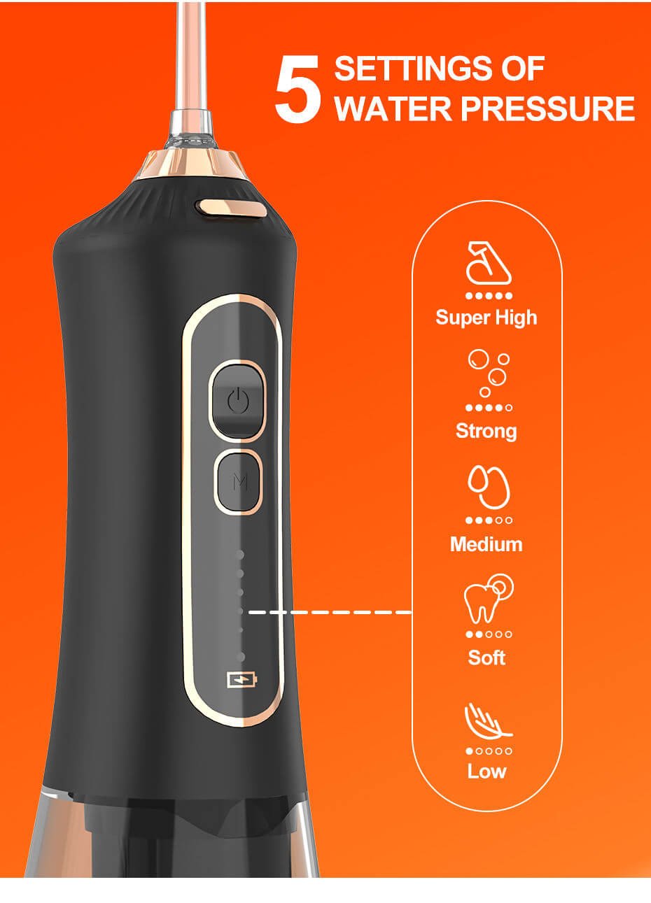The Water Flosser Irrigator is a modern oral hygiene device designed to clean between teeth and along the gum line using a powerful yet gentle water stream. It effectively removes food particles, plaque, and bacteria from hard-to-reach areas where traditional brushing and flossing may not reach.